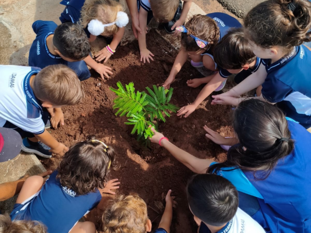 Durante a atividade, os alunos participaram de um momento imersivo ao plantar uma árvore, vivenciando, na prática, conceitos importantes ligados à sustentabilidade. Além de ser uma ação simbólica, o plantio proporcionou uma reflexão concreta sobre o cuidado com a natureza e a importância de preservar o planeta.