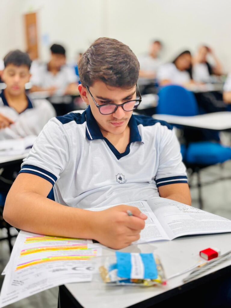 A atividade foi aplicada em dois dias, seguindo o modelo oficial do Exame Nacional do Ensino Médio: a Prova I, no dia 16 de março, e a Prova II, no dia 23 de março. Além das questões objetivas, os alunos também realizaram a produção de redação, compondo uma experiência completa e alinhada às exigências do exame.